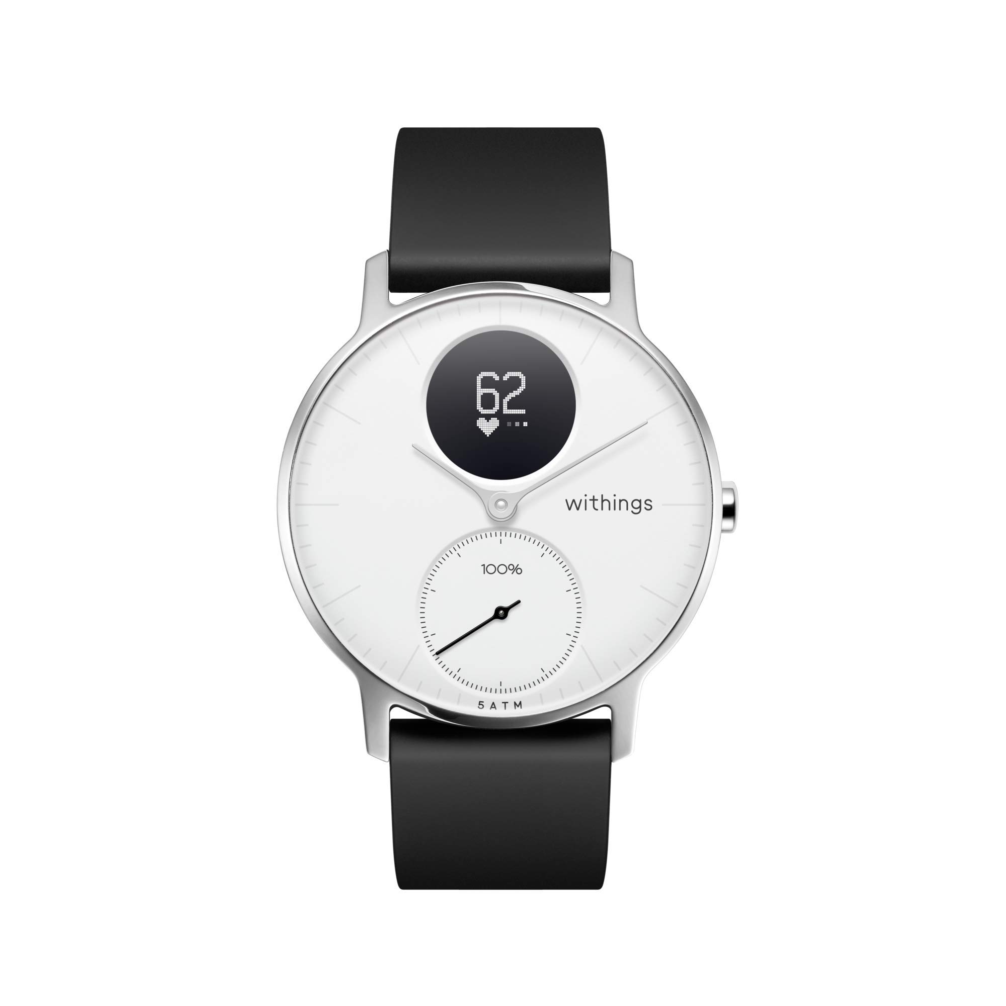 ![]() | Withings Steel HR Hybrid Smartwatch – zegarek fitness z pomiarem tętna i aktywności, 36 mm – biały, czarny silikonowy pasek biały 36 mm | 6.12 zł | B0711LKZKX | 3700546702549 |