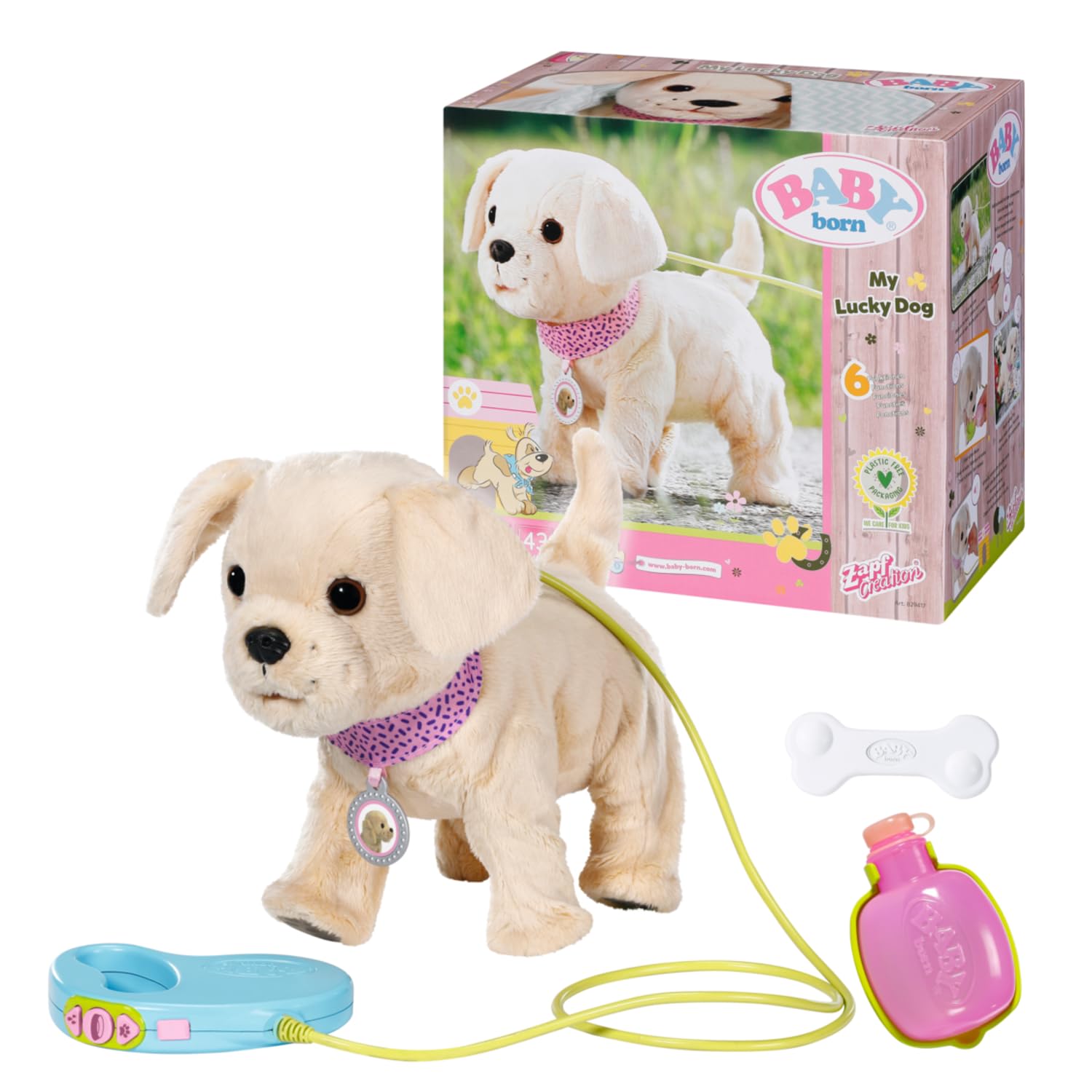 BABY born, Pies, My Lucky Dog, BABY Born pies z funkcją obroży, wisiorek, smycz, butelką i kością, 829417, Zapf Creation. Pojedynczy2.53 złB085552T7C4001167829417