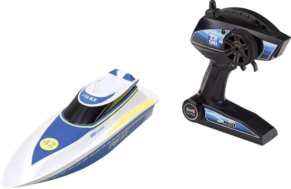 Revell Control 24138 RC Polizeiboot, mit wasserdichter Elektronik und integriertem LI-Ion-Akku Kofferraum Ferngesteuertes Boot, weiß/blau, Einheitsgröße1.41 złB07JR1B5VY4009803241388
