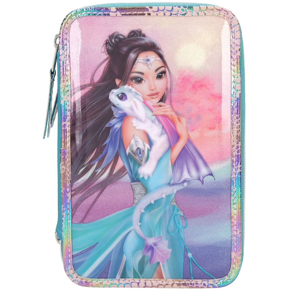 Depesche 11674 TOPModel - 3-komorowy piórnik Dragon Love z motywem smoka, efekt brokatu i połyskującymi elementami smoczej skóry, etui ucznia w kolorze turkusowym z kredkami, linijką, nożyczkami itp.1.12 złB09QGNL5BF4010070598075
