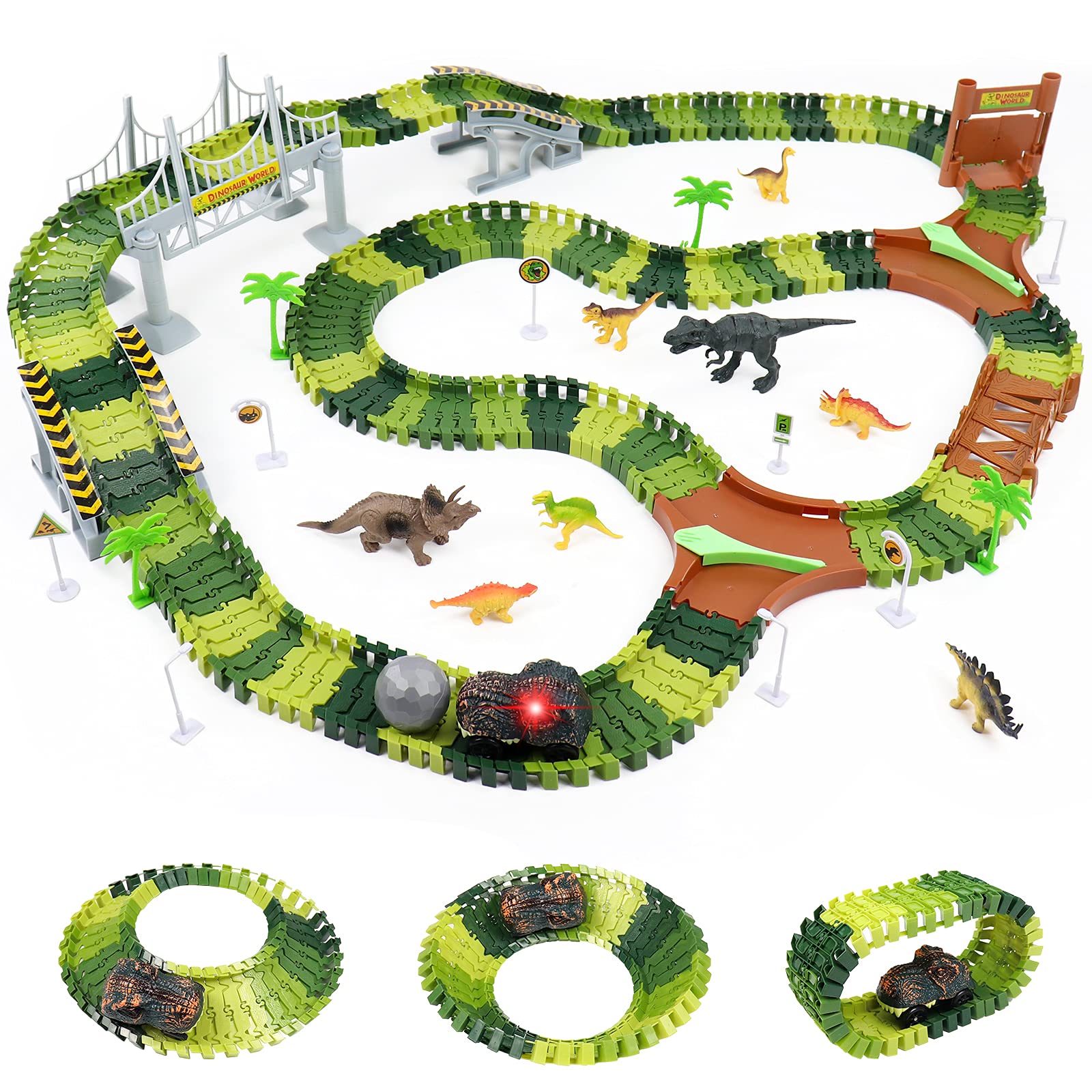 Tor wyścigowy dinozaurów, zabawka dla dzieci w wieku od 3, 4, 5, 6 lat, dla chłopców i dziewczynek, 216 sztuk, elastyczny tor wyścigowy dla dzieci z 8 dinozaurami, 1 zabawka samochodowa, Strax,0.44 złB0829LD65W
