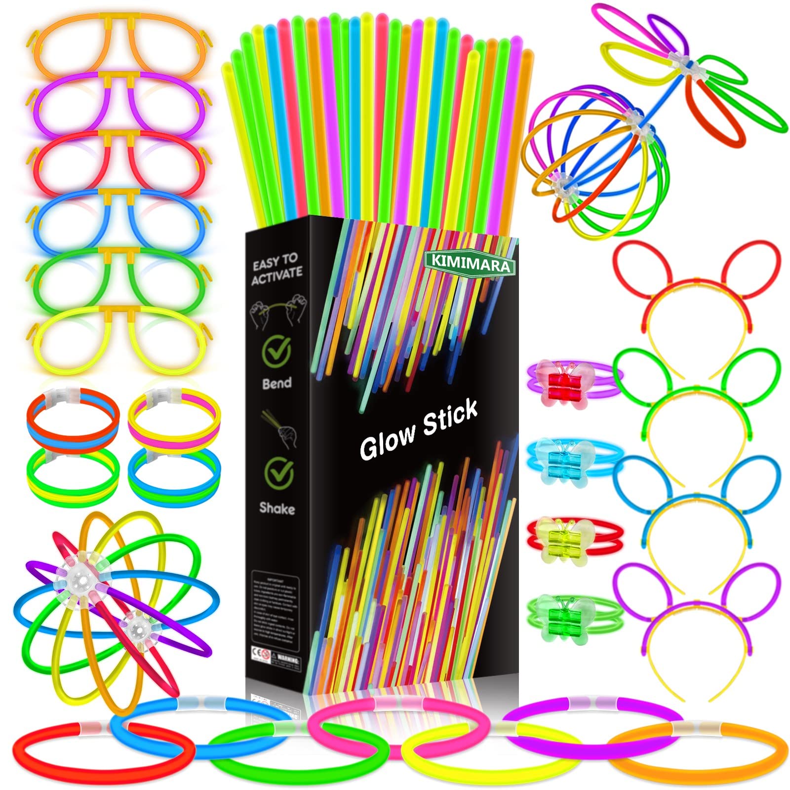 Świetliki, 100 świecących prętów z 122 przyłączami, łącznik do bransoletek i zestaw okularów, świecąca zabawka dla dzieci Zmodernizowany0.31 złB07Q1L2TMH8431250105474