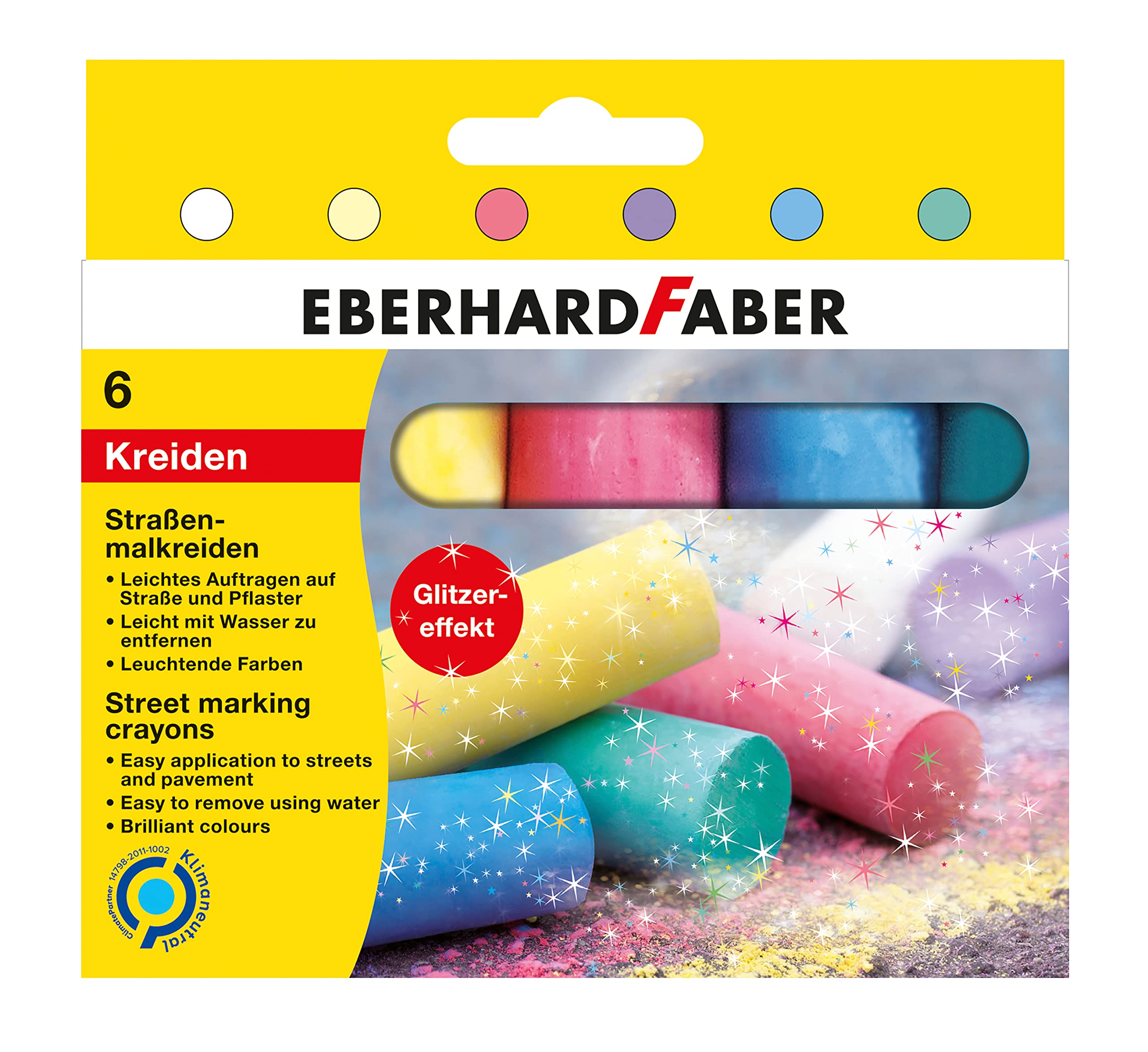 Eberhard Faber 526504 - Kredki uliczne w 6 jaskrawych kolorach z efektem brokatu, w kartonowym etui, do kolorowej zabawy w rysowanie po asfalcie, ulicach i chodnikach0.26 złB01BUUT8F64087205265041